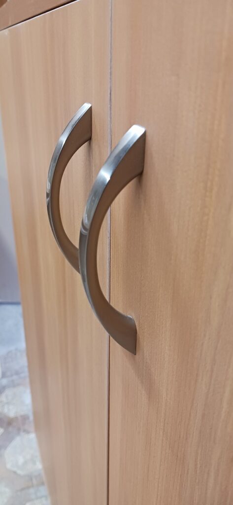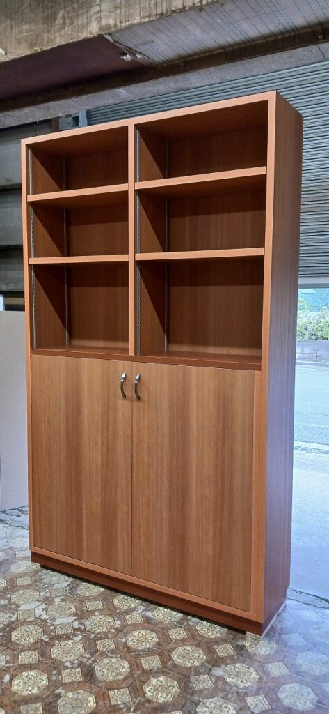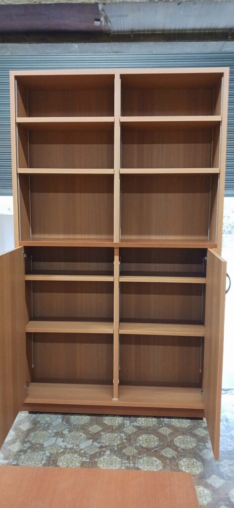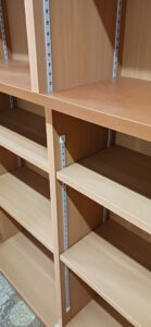 2026.02.12 カウンターバック収納 そんなに寒くない花曇りの木曜日。w1200×H2100×D470㎜のミッドサイズ収納棚、すべてのスパンに決められたモノを収納する大容量の専用サイズ設計、上下の中央部分に位置する天板はメインカウンタートップ面と同一レベルで連続した流れを織りなすデザイン、天板はライトブラウン色のホワイトバーチ追柾柄のメラミン化粧板仕様、本体はゼネラルバーチ柾目柄のポリエステル化粧合板仕上げ。