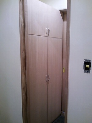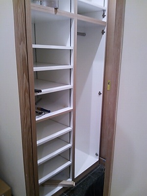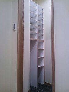 冬晴れ続く、燃えるゴミの日の水曜日。棚だけのタイプとは違い、収納本体ごと設置したシューズインクローク